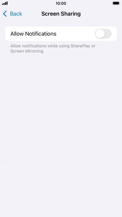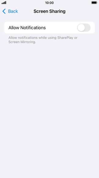 You can turn display of notifications when using SharePlay or Screen Mirroring on or off.