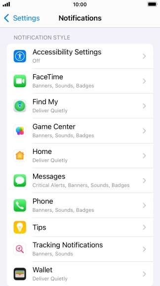 Press the indicator next to "Allow Notifications" to turn notifications for the selected application on or off.