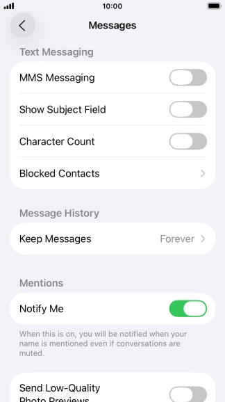 Press the indicator next to "MMS Messaging" to turn on the function.