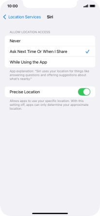 Press the indicator next to "Location Services" to turn the function on or off.