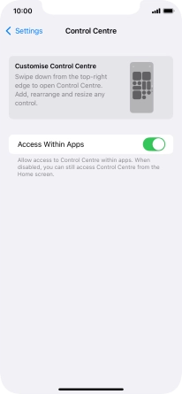 If you turn on the function, Control Centre can be used both on the home screen and while using other applications.