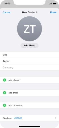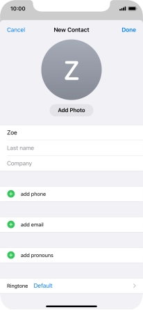 Follow the instructions on the screen to add more information such as an email address and a personal ring tone.
