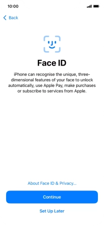 Follow the instructions on the screen to turn on use of Face ID or press Set Up Later.