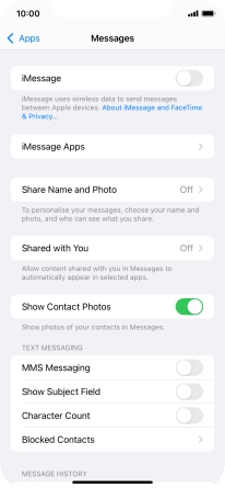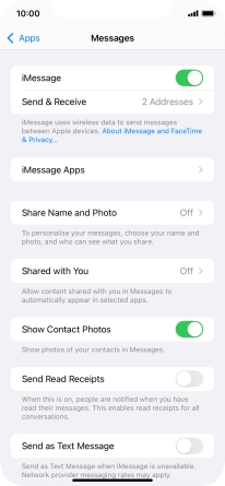 Press the indicator next to "Send as Text Message" to turn the function on or off.