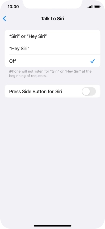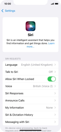 Press the required setting to turn the function on or off. If you turn on the function, you need to follow the instructions on the screen to set up Siri to recognise your voice.