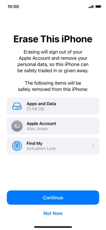 Key in the password for your Apple ID and press Turn Off. Wait a moment while the factory default settings are restored. Follow the instructions on the screen to set up your phone and prepare it for use.