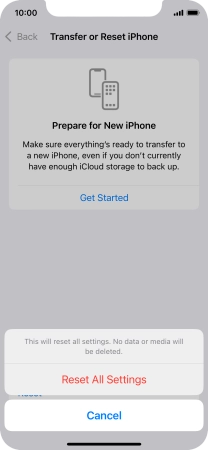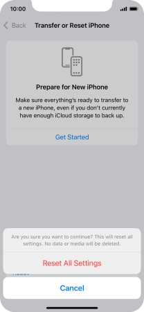 Press Reset All Settings. Wait a moment while the factory default settings are restored. Follow the instructions on the screen to set up your phone and prepare it for use.