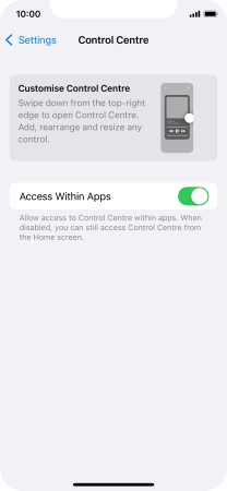2. Turn use of Control Centre in applications on or off