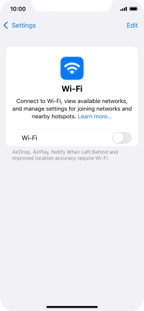 Press the indicator next to "Wi-Fi" to turn the function on or off.