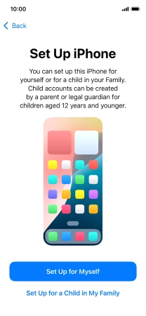 If your phone will be used by a child below the age of 13, follow the instructions on the screen to set up an Apple ID for the child.