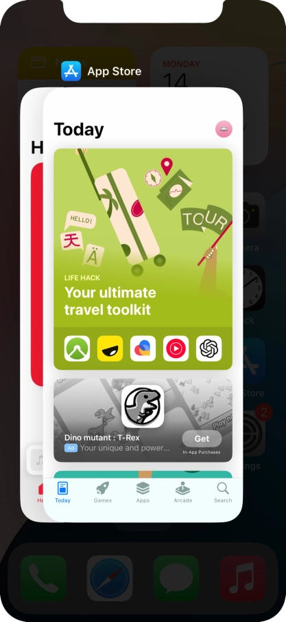 Slide your finger slowly upwards starting from the bottom of the screen until the list of running applications is displayed.
