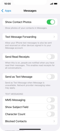 Press the indicator next to "Send as Text Message" to turn the function on or off.