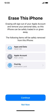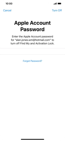 Key in the password for your Apple ID and press Turn Off. Wait a moment while the factory default settings are restored. Follow the instructions on the screen to set up your phone and prepare it for use.