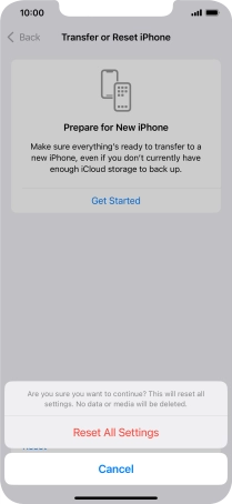 Press Reset All Settings. Wait a moment while the factory default settings are restored. Follow the instructions on the screen to set up your phone and prepare it for use.