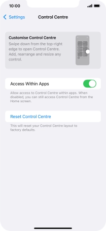 Select settings for Control Centre on your Apple iPhone Xs Max iOS 18