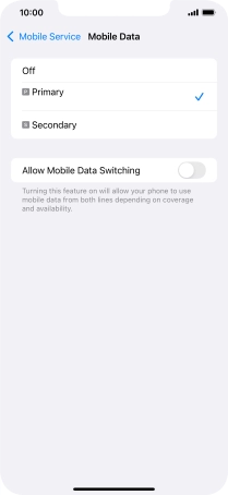 Press the indicator next to "Allow Mobile Data Switching" to turn the function on or off.