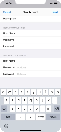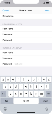 Press Host Name and key in the name of your email provider's incoming server.