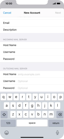 Press Host Name and key in the name of your email provider's outgoing server.