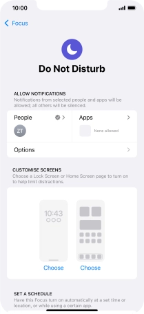 Press Add Schedule and follow the instructions on the screen to select settings for automatic activation of Do Not Disturb.