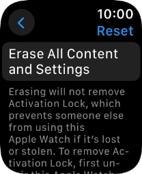 Press Erase All. Wait a moment while the factory default settings are restored. Follow the instructions on the screen to set up your Apple Watch and prepare it for use.