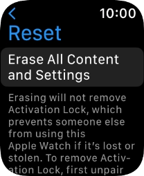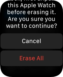 Press Erase All. Wait a moment while the factory default settings are restored. Follow the instructions on the screen to set up your Apple Watch and prepare it for use.