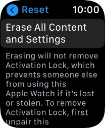Press Erase All. Wait a moment while the factory default settings are restored. Follow the instructions on the screen to set up your Apple Watch and prepare it for use.