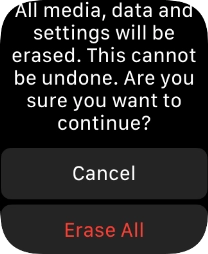 Press Erase All. Wait a moment while the factory default settings are restored. Follow the instructions on the screen to set up your Apple Watch and prepare it for use.