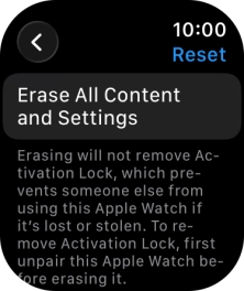 Press Erase All. Wait a moment while the factory default settings are restored. Follow the instructions on the screen to set up your Apple Watch and prepare it for use.
