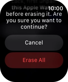 Press Erase All. Wait a moment while the factory default settings are restored. Follow the instructions on the screen to set up your Apple Watch and prepare it for use.