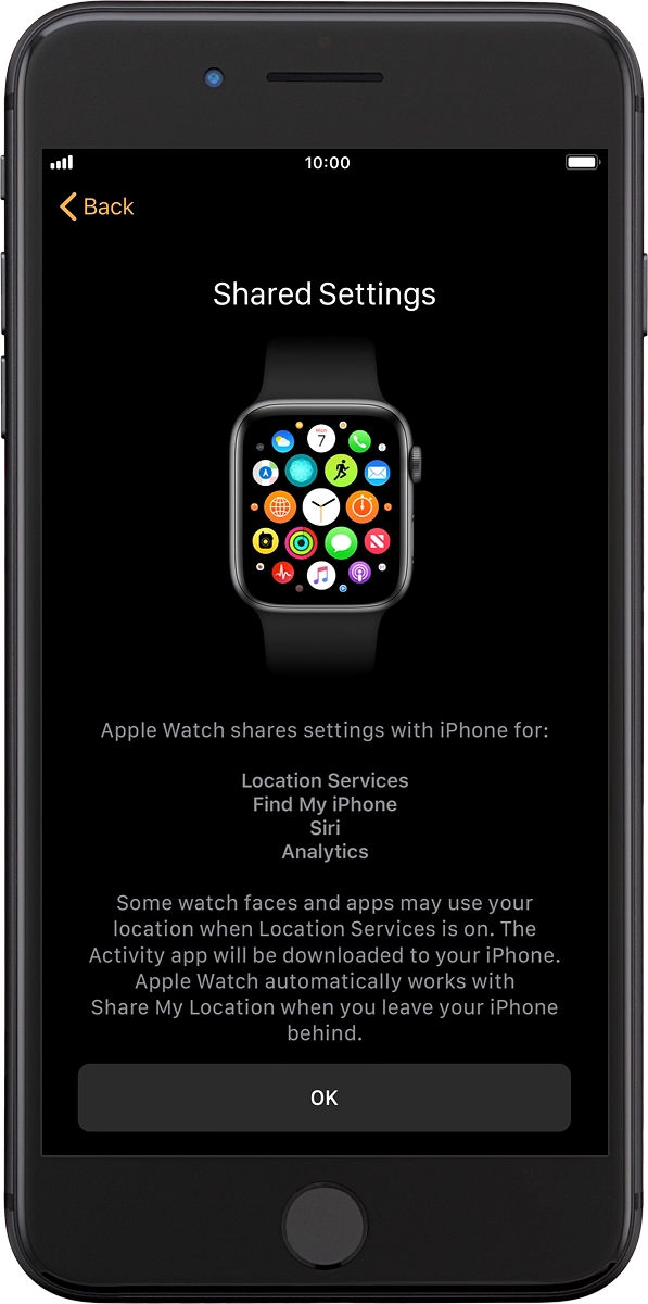 On your phone: When this screen is displayed, your Apple Watch is connected to your phone.