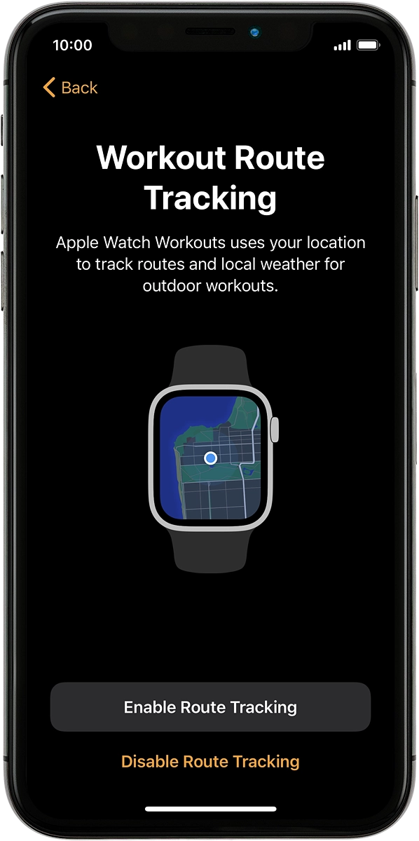 5 Turn tracking of workout route on or off