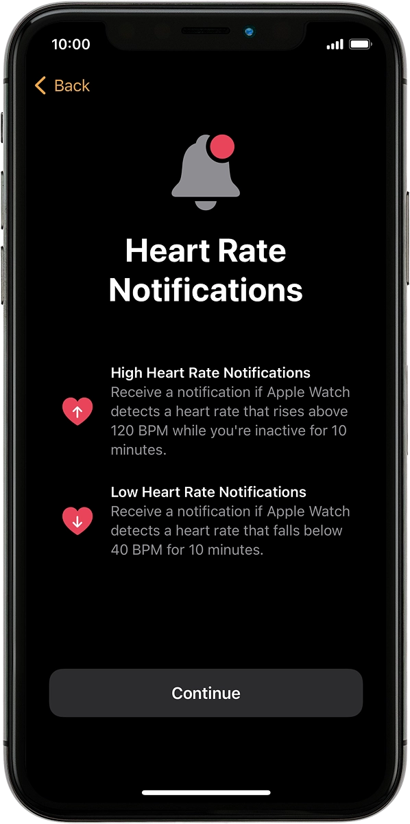 View heart rate notification information
