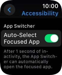 You can select app switcher settings, such as setting your Apple Watch to automatically open a visible app from the list of running apps.