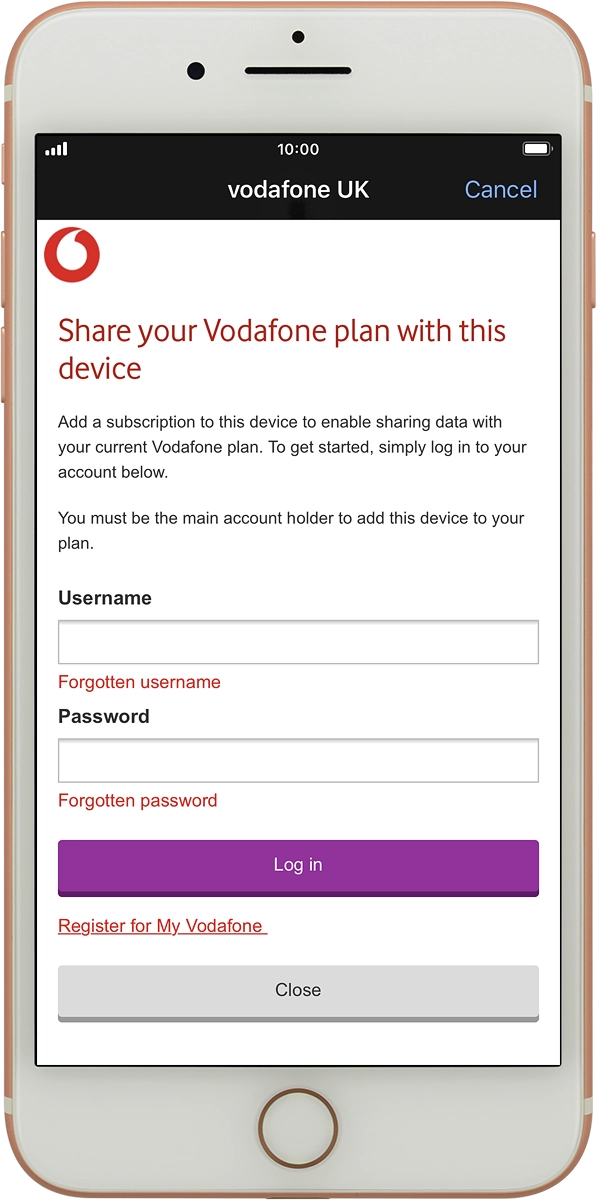 On your phone: Press the field below "Username" and key in the username for your My Vodafone account.