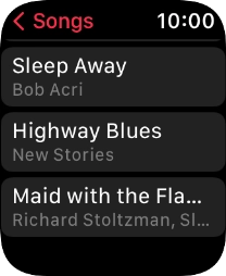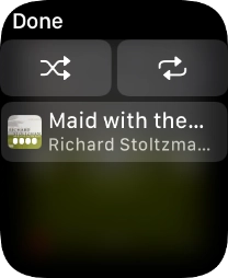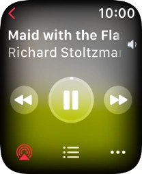 You can use the music player to play audio files you've synchronised with your Apple Watch. To use the music player, you need to establish a connection to a Bluetooth headset.