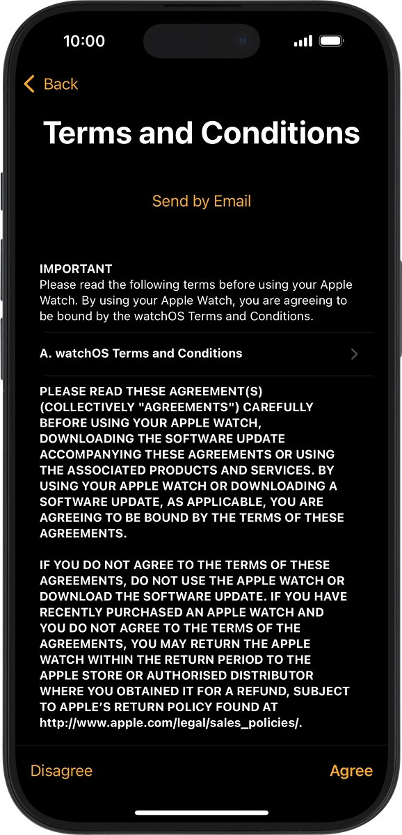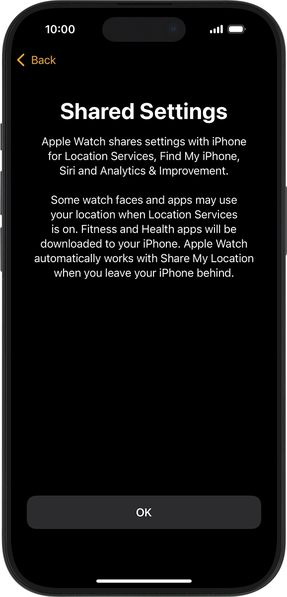 On your phone: If you've bought your Apple Watch from Vodafone, you already have a OneNumber Connectivity price plan and this screen should be displayed.