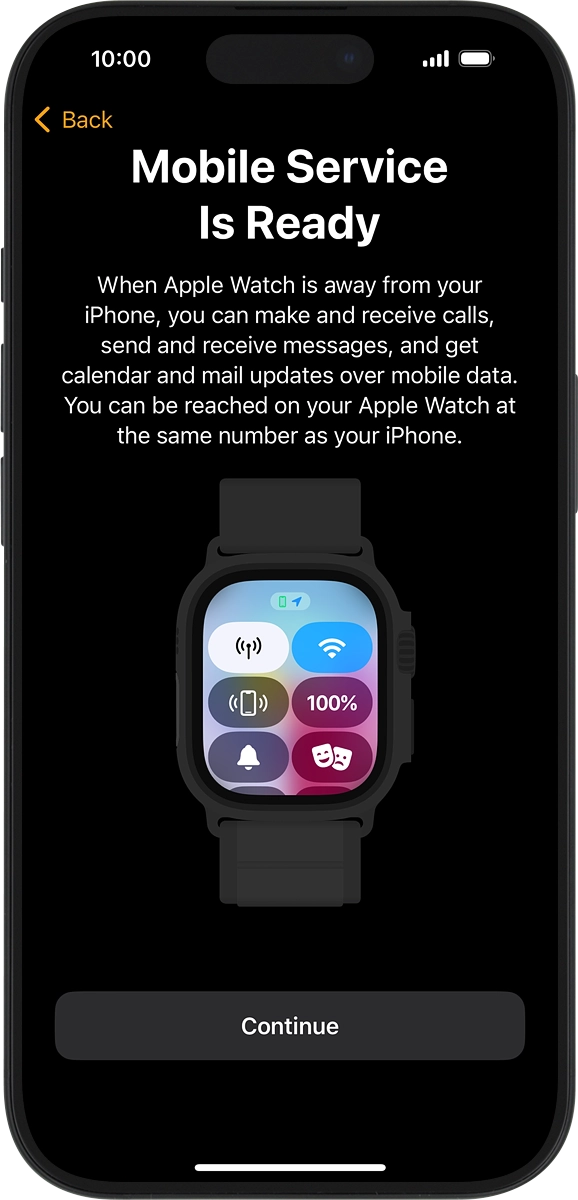 On your phone: The price plan will be activated once you’ve paired your Apple Watch and your phone and you should see this screen in the Watch app settings on your phone.