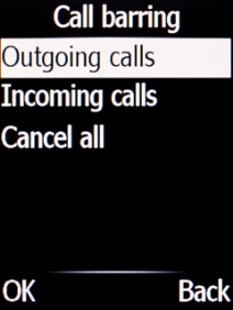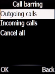 Select the required barring type.