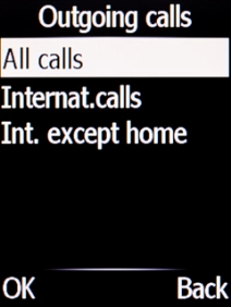 Key in your barring password and press the Navigation key. The default barring password is 1919.