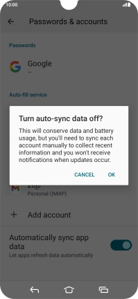 Press the indicator next to "Automatically sync app data" to turn the function on or off.