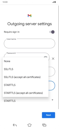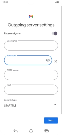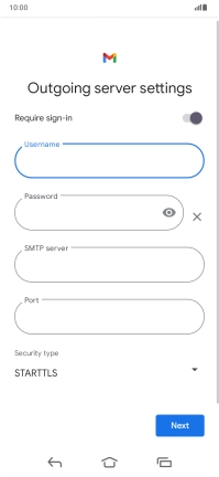 Press the field below "Username" and key in the username for your email the email provider's outgoing server.
