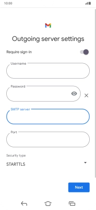 Press the field below "SMTP server" and key in the name of your email provider's outgoing server.