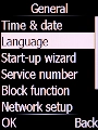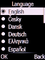 Select the required language and press the Left selection key.
