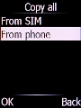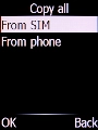 Select From SIM and press the Left selection key.