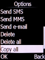 Select Copy all and press the Left selection key.