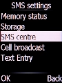 Select SMS centre and press the Left selection key.