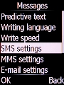 Select SMS settings and press the Left selection key.