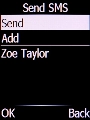 Select Send and press the Left selection key.