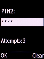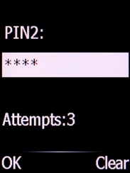 Key in your PIN2 and press the Left selection key. The default PIN2 is 1111.