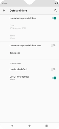 Press the indicator next to "Use network-provided time" to turn on the function.